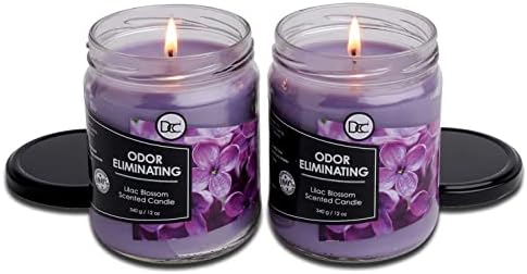 Lilac Blossom Two Pack Odor Eliminating Highly Fragranced Candle – Eliminates 95% of Pet, Smoke,