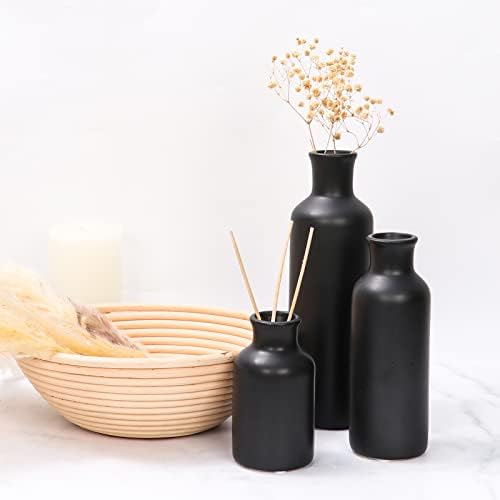 Set of 3 Black Ceramic Vases Set,5″ 7.5″ 10″ Tall Small Matte Black Vases,Modern Home Decor,Boho